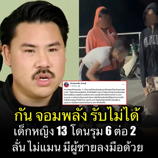 ขณะที่ กัน จอมพลัง ได้โพสต์ข้อความว่า “ทางครอบครัวของน้อง 13 ทักมาขอให้ผมช่วยน้องถูกเรียกออกไปแล้วรุมยำน้อง 6 ต่อ 2 มีผู้ชายร่วมลงมือด้วย ที่หนักคือมีการเอาเท้าช้อนหน้าน้องจนหลับพร้อมกับถ่ายคลิปเยาะเย้ยด้วย ผมรับปากช่วย ตอนนี้ผมโทรประสานกับท่าน ผกก.บางบาล ท่านรับปากกับผมจะดำเนินการเต็มที่ส่วนประเด็นที่มีลูกตำรวจร่วมนั้นกำลังตรวจสอบว่ามีจริงไหม แต่ท่าน ผกก. ยืนยันให้ ลูกใครก็ดำเนินคดีตามกฎหมาย พรุ่งนี้ผมจะประสานกับท่าน ผกก. อีกครั้งครับ”