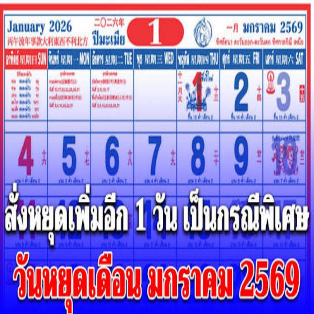 วันศุกร์ที่ 2 มกราคม 2569 : วันหยุดพิเศษ