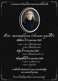 กำหนดสวดอภิธรรม นายฟ้าธร ขจรเขตต์ธรรม (ประจวบ บุตรศิริ) ณ วัดปากบึง ซอยร่มเกล้า 24 แขวง คลองสองต้นนุ่น เขต ลาดกระบัง กรุงเทพฯ
