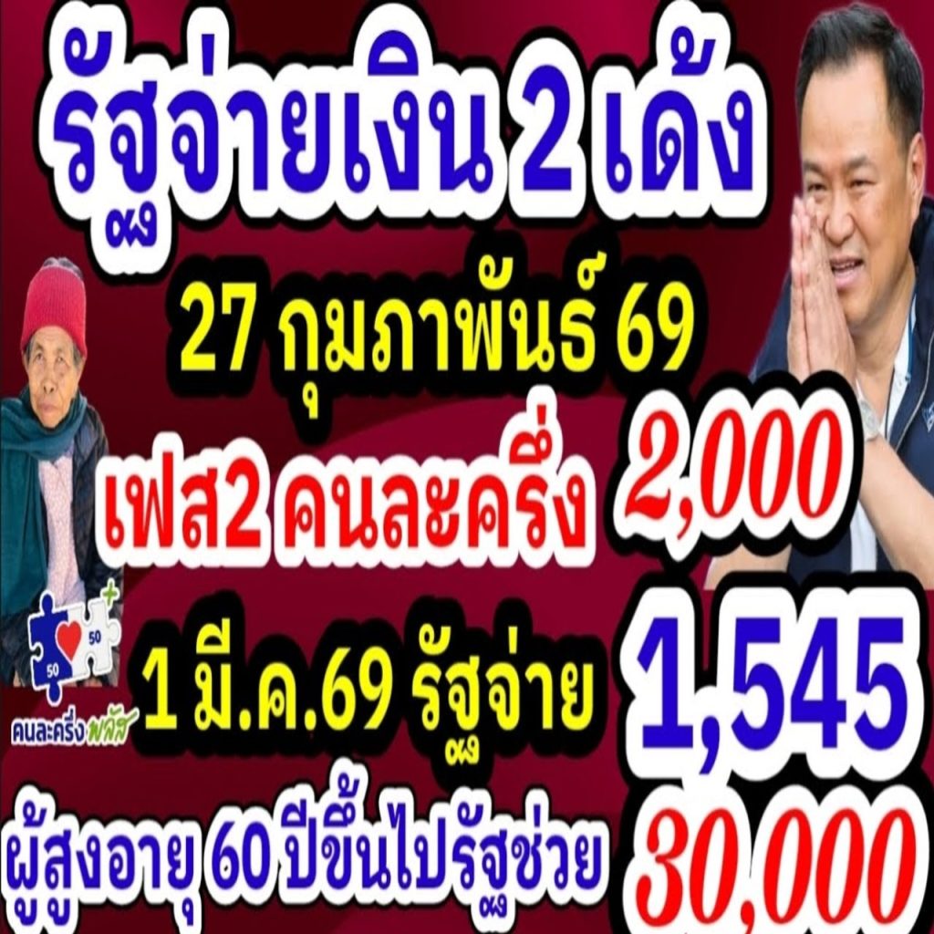 จ่ายเงินคนละครึ่ง 27 กุมภาพันธ์ 69 จ่ายเงิน 2 กลุ่มไม่สะดุด คนละครึ่ง บัตรคนจน รัฐบาลใหม่เดินหน้าทัน