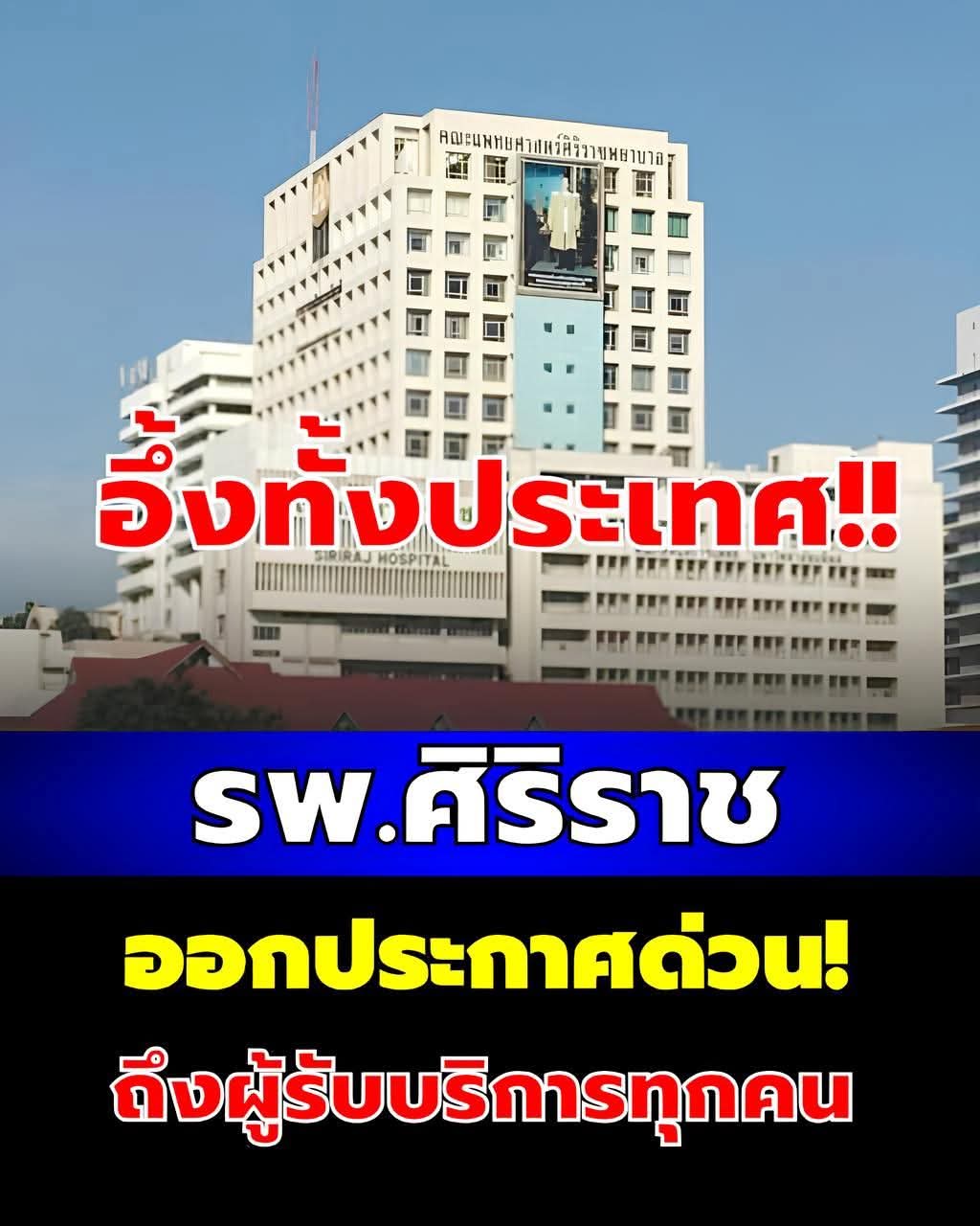 วันที่ 19 มีนาคม 2569 โรงพยาบาลศิริราช ได้ออกประกาศแจ้งผ่านเพจ Siriraj Hospital ถึงผู้รับบริการโรงพยาบาลศิริราชทุกคน โดยระบุว่า