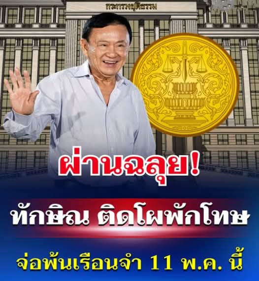 ทั้งนี้ มีรายงานว่า นายทักษิณ มีแนวโน้มได้รับการพักโทษปล่อยตัวออกจากเรือนจำกลางคลองเปรม ในช่วงเช้าวันจันทร์ที่ 11 พฤษภาคม 2569 เพื่อเข้าสู่กระบวนการคุมประพฤติอีก 4 เดือน ก่อนครบกำหนดโทษ 1 ปี และพ้นโทษโดยสมบูรณ์ตามขั้นตอนกฎหมาย