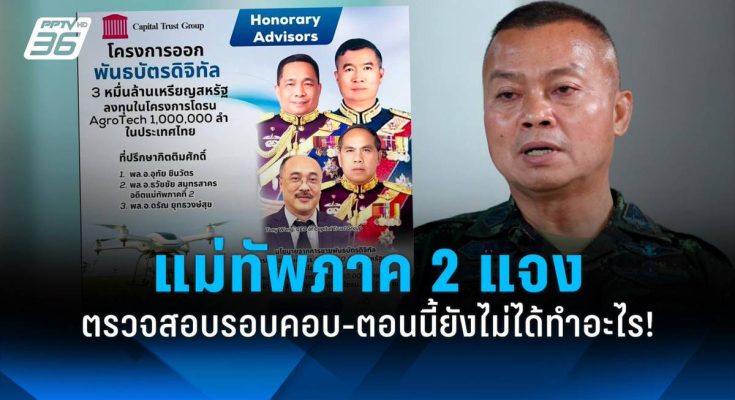แม่ทัพภาคที่ 2 แจงลงทุนโดรนเกษตร 3 หมื่นล้านดอลลาร์ ต้องตรวจสอบรอบคอบ-ตอนนี้ยังไม่ได้ทำอะไร ยอมรับเพจกองทัพเผยแพร่เร็วไปหน่อย ด้านอดีตบิ๊กทหารแจง หวังฝึกอาชีพ-ระดมทุนต่างประเทศ