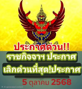 อัปเดต ราชกิจจาฯ ประกาศเลิกด่วนที่สุด!ประกาศ​ … 5 ตุลาคม 2568