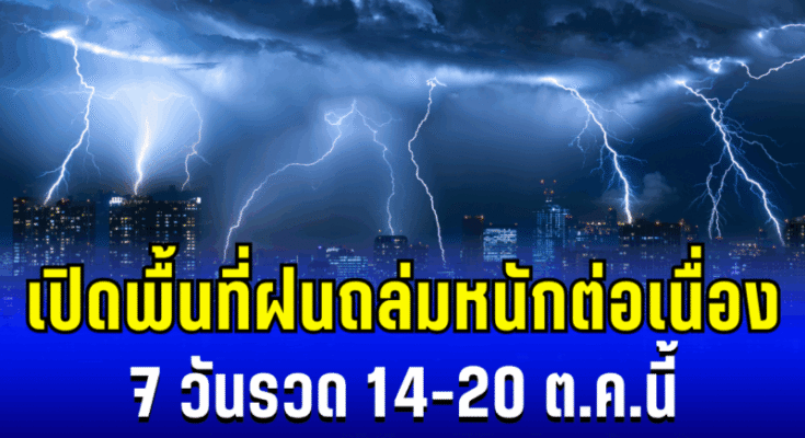 โดนเต็มๆ! กรมอุตุฯ ประกาศพื้นที่ ฝนถล่มหนักต่อเนื่อง 7 วันรวด 14-20 ต.ค.นี้