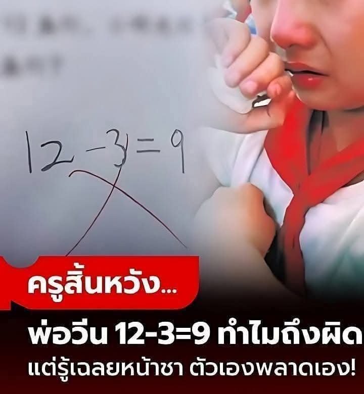 ครูสิ้นหวัง พ่อเด็กวีน 12-3=9 เลขง่ายๆ ทำไมตรวจผิด แต่รู้เฉลยหน้าชา เป็นตัวเองที่พลาด!