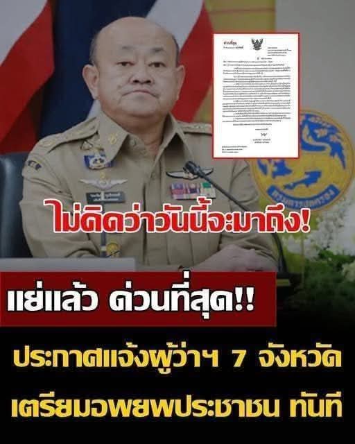 ด่วนที่สุด แจ้งผู้ว่าฯ 7 จังหวัด เตรียมแผนอพยพประชาชน ทันที