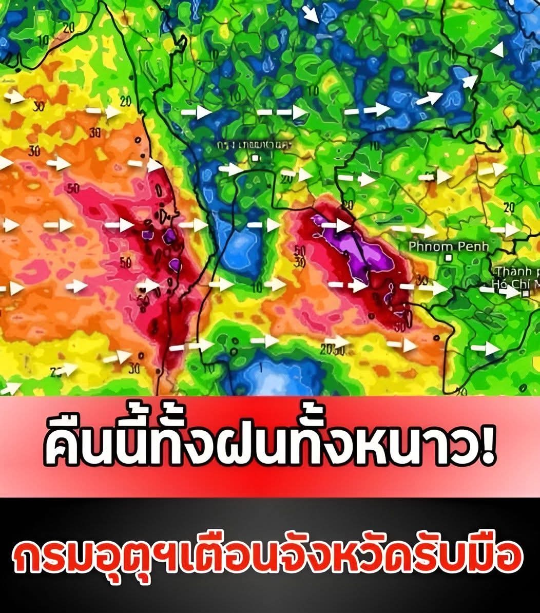 คำเตือนด่วน!!!คืนนี้ทั้งฝนทั้งหนาว! กรมอุตุฯเตือนจังหวัดรับมือ