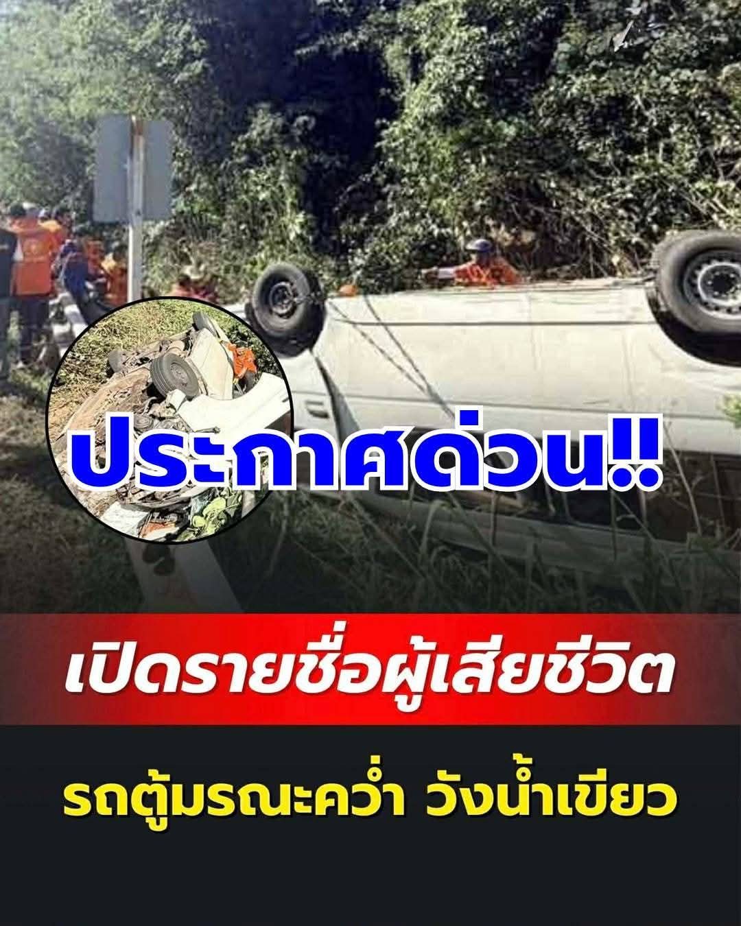 ประกาศด่วน! เปิดรายชื่อผู้เสียชีวิต รถตู้มรณะคว่ำ วังน้ำเขียว : ดูรายชื่อในคอมเมนต์
