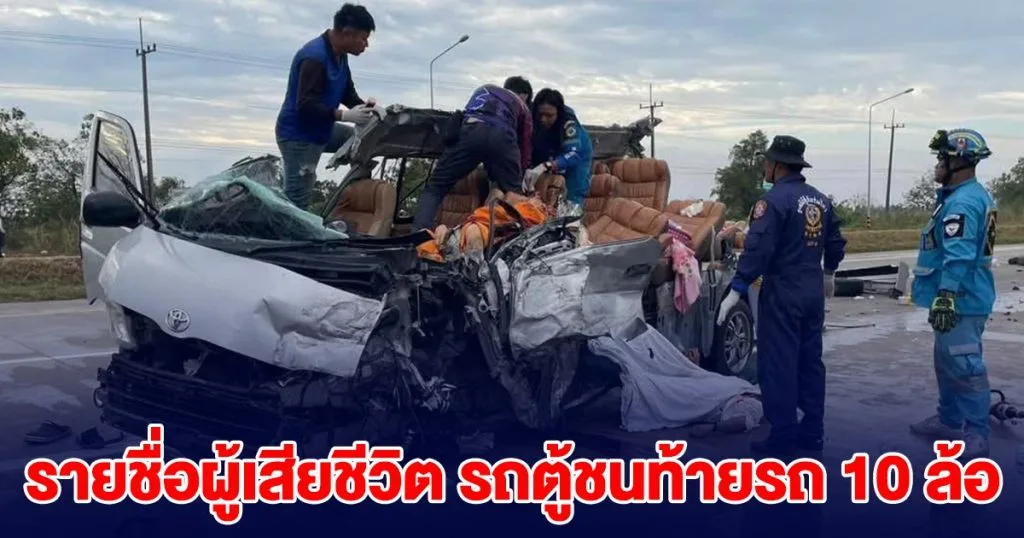 แจ้งข่าวด่วน!! รายชื่อผู้เสียชีวิต รถตู้โดยสาร ชนท้ายรถ 10 ล้อ